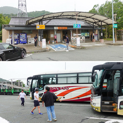 休憩地点である多気(たき)パーキングエリアに到着し、14:00に出発しました。注文した赤福の受け取りも完了です。
