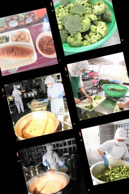 献立は、白身魚のフリッター・ミネストローネ・ブロッコリーのサラダ・おさつパン・牛乳でした。