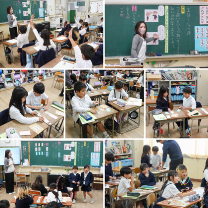 5時間目、国語の学習。主語と述語を組み合わせて分を作る学習をしていました。