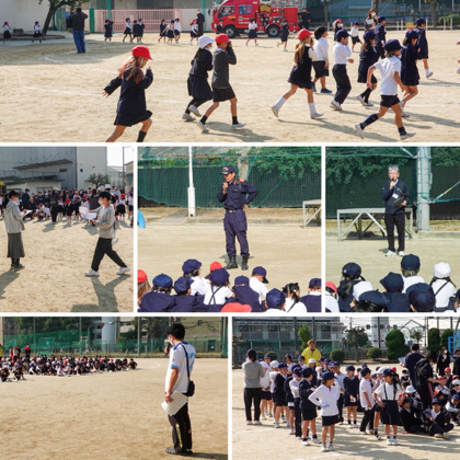 避難訓練後、消防士さんは「静かに避難できていました。よかったと思います」「運動場に出てきてから、点呼されるまで気を抜かないように」「放送機器が使えないこともありますから、指示を聞くために静かにすることが大切です」と話をされました。校長先生からは「自分の身は自分で守ること、そして、落ち着いて行動することは、周りの人の命も守ることになることも忘れないでください」と、お話がありました。