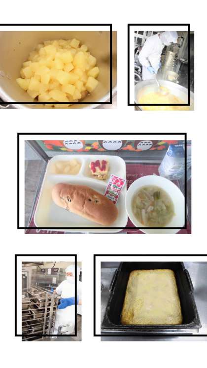 献立は、ツナポテトオムレツ・ケチャップ(袋)・スープ・洋なし(カット缶)・レーズンパン・牛乳でした。