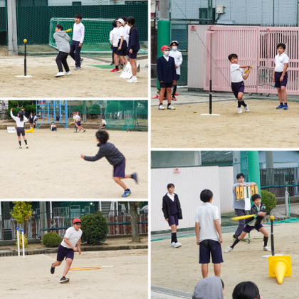 フルスイングでかっ飛ばす子もいれば、守備位置を見て軽打する子も。守備側も、ボールが飛んできそうなところに山を張って位置を変えるなど、声をかけ合いながらプレーしていました。