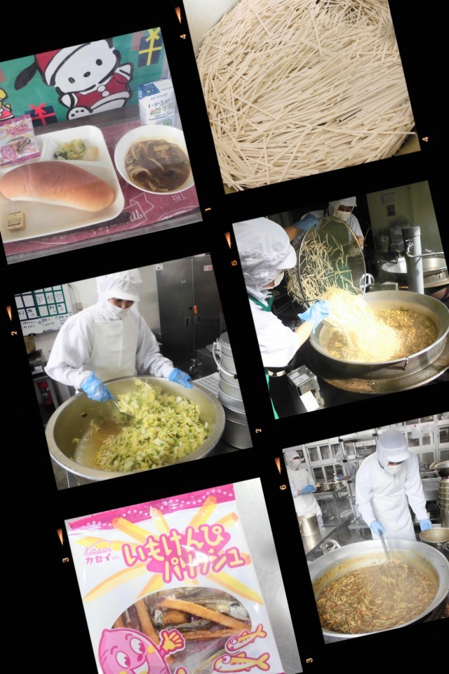 献立は、カレーうどん・はくさいのおひたし・いもけんぴフィッシュ・コッペパン・バター・牛乳でした。
