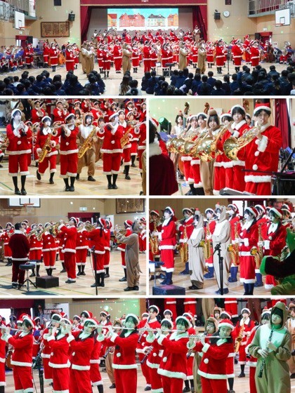 高学年の部は90分間。「サンタコンサート」ということで、指揮者の梅田隆司(うめだ たかし)先生や部員さんは、サンタやトナカイの衣装を着て演奏します。