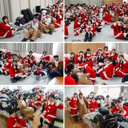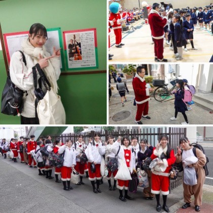 お昼の時間、部員さんは、講堂・家庭科室・マルチルームでひと休み。サンタやトナカイに扮した部員さん160名が校内をうろうろしており、にぎやかで楽しい、非日常感あふれる一日となりました。