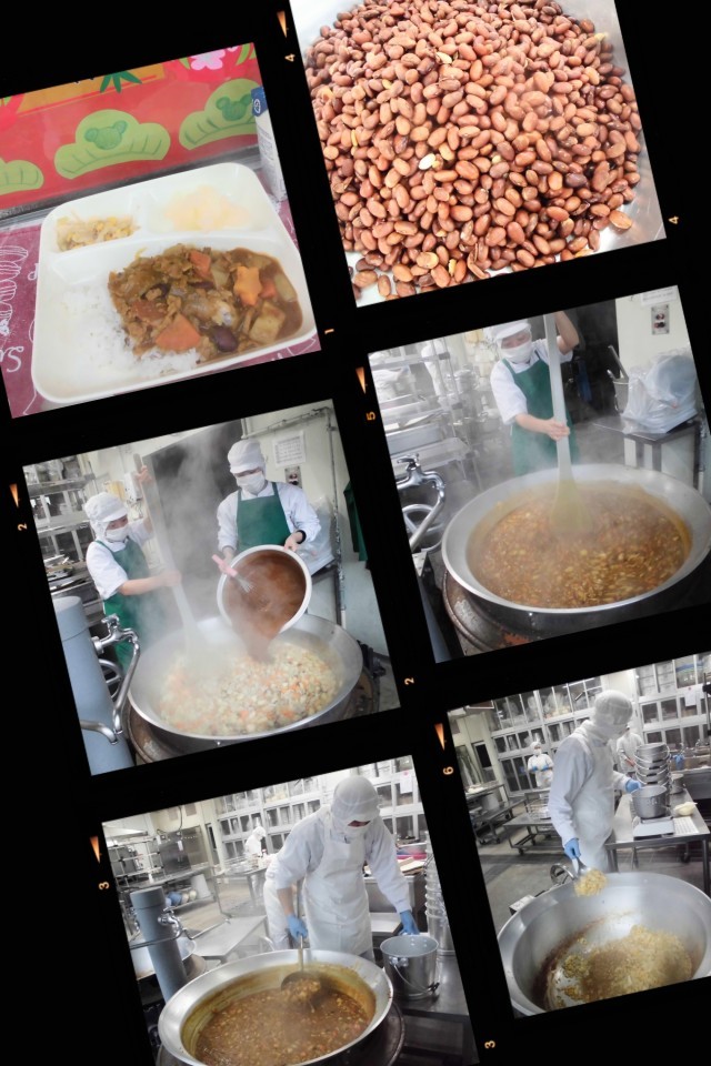 豚肉と金時豆のカレーライスは、豚肉・たまねぎ・にんじん・じゃがいも・ドライパックの金時豆を使用したカレーライスです。ラッキーにんじん☆が入っているので、『ラッキーにんじん☆や~』と喜ぶ声が聞こえてきました。