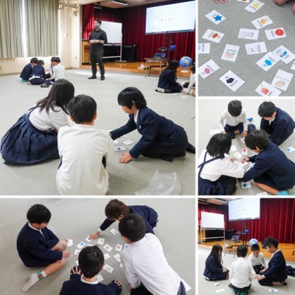 4時間目、外国語(英語)の学習。マルチルームで「かるた大会」をしていました。お正月の伝統遊びである「かるた」を使った英語学習ですね。