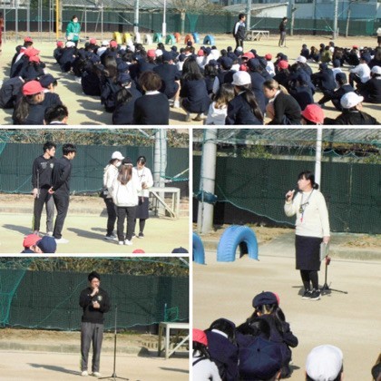 訓練後、教頭先生からは、「避難の際には、帽子をかぶることを忘れないようにしましょう」「今日、家に帰ったら、地震が起きたときに家族が別々の場所にいた場合、どこに集まるのかを確認してください」といったお話がありました。また、「今朝の全校朝会で校長先生からも避難訓練について話がありましたが、今日は安全に、すばやく避難することができていました。よく頑張りました」と、児童の行動をたたえる言葉がありました。