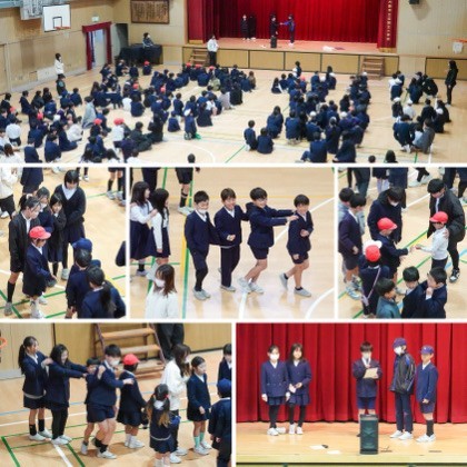 朝の時間、講堂で児童集会が行われました。集会委員会の児童が企画・運営する、今年度11回目の集会です。