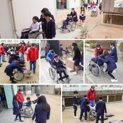 平野区社会福祉協議会のスタッフの方に来ていただいて、3,4時間目に「車いす体験」を行いました。