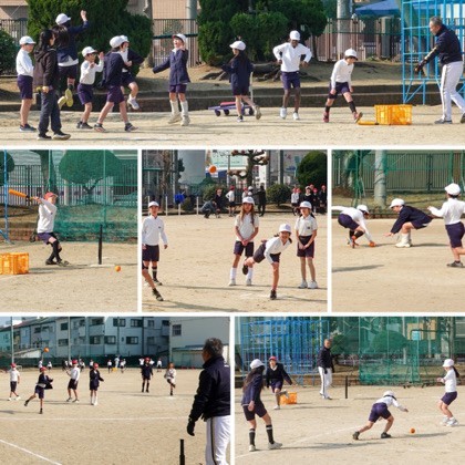 子どもたちは思いきりバットを振り、全力で走り抜けます。守備の子も、ボールを捕ったらとにかくバックホーム! 大きな打球が飛ぶたびに歓声が上がり、運動場は大いに盛り上がりました。
