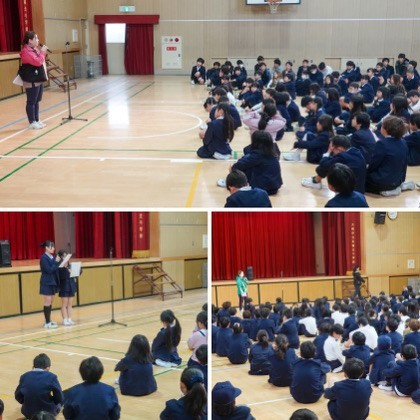 続いて、美化委員会から「今週の美化週間」についての連絡がありました。ていねいに、きれいに掃除をして、美化委員会制作のパズルを完成させてくださいね。
