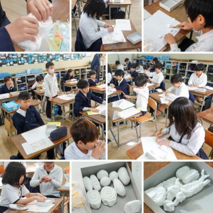 2時間目、図工の学習。紙粘土を使って、お弁当の具材づくりに挑戦しました。