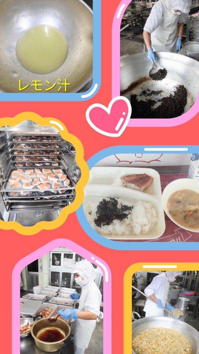献立は、あかうおのレモンじょうゆかけ・みそ汁・牛ひじきそぼろ・ごはん・牛乳でした。