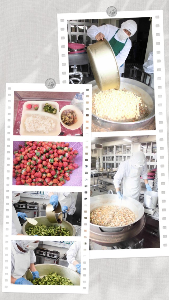 献立は、すき焼き煮・ブロッコリーのしょうがづけ・いちご🍓・ごはん・牛乳でした。