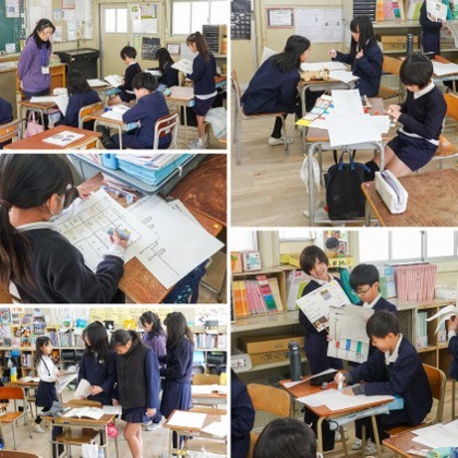 この時間は、来週の発表に向けた準備を進めていました。アンケート結果をもとに見せる資料を作ったり、報告の原稿を確認したり、発表の役割を分担したりと、グループで相談しながら活動していました。