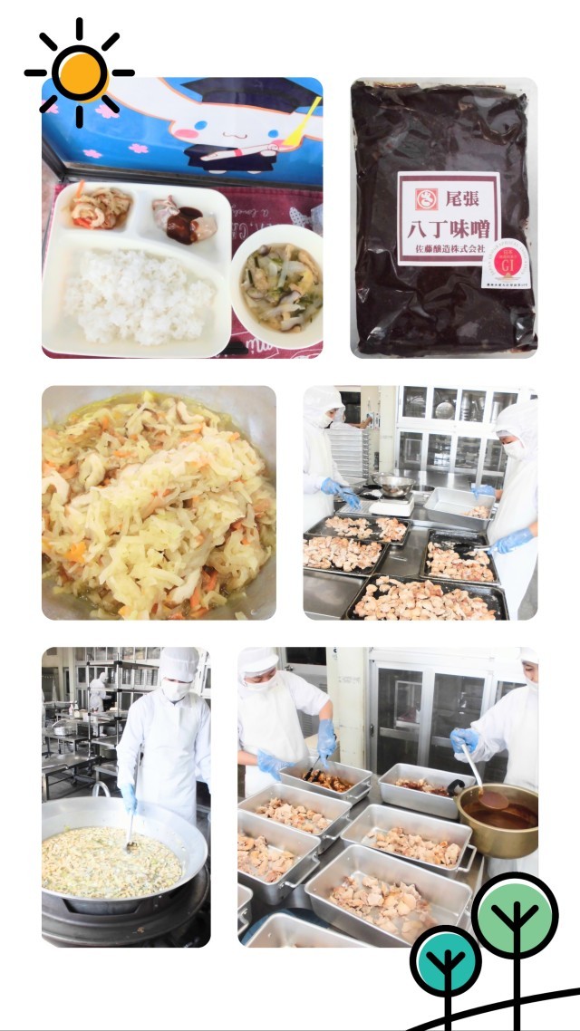 献立は、鶏肉の八丁みそだれかけ・五目汁・切干しだいこんのいため煮・ごはん・牛乳でした。