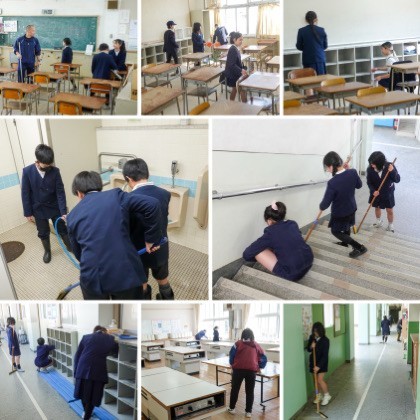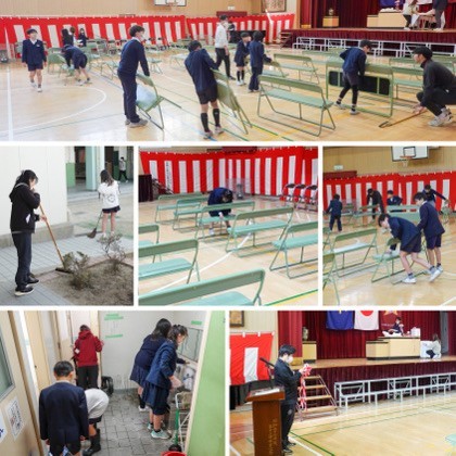 5年生の子どもたちは、「講堂や校内をきれいに整え、気持ちよく卒業式が行えるように」という思いをもって、一生懸命作業していました。その姿からは、最高学年へと向かう心の準備が着実に進んでいることが感じられました。