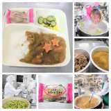 献立は、チキンレバーカレーライス・きゅうりとコーンのサラダ・スイートポテト・ごは...