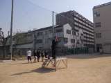 みんなで1年生を迎えるために、運動場に集まりました。 6年生の代表委員が、1年...