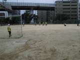 この日の屋外運動はサッカーです。広いコートで一生懸命ボールを追いかけていました...