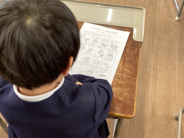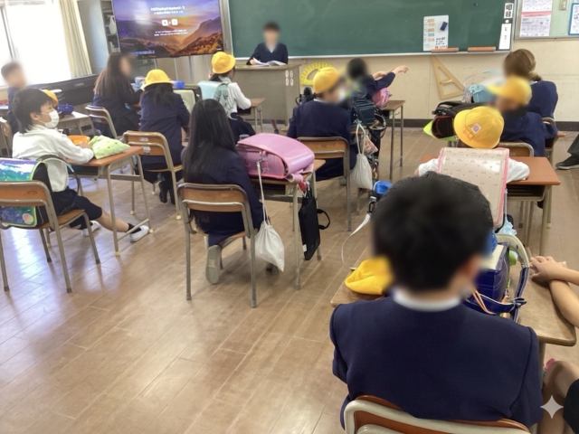 1年生が初めて保健室を訪れました。保健室の先生から、ケガをした時やしんどい時の過ごし方についてお話を聞きました。静かに座って先生を見つめる真っ直ぐな瞳に、1年生としての自覚と成長を感じるひとときでした。