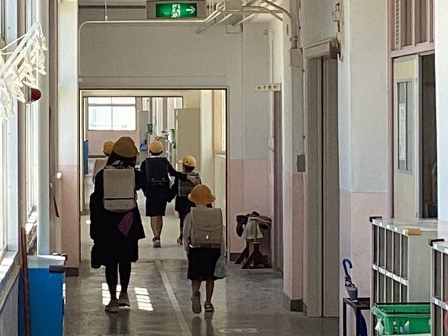 本日、地区ごとに分かれて集団登校班の確認を行いました。1年生にとっては、初めての地区班活動。6年生が1年生をそれぞれの教室へ案内し、班のメンバーや集合場所を一緒に確かめました。廊下で優しく声をかける6年生と、それに応える1年生。学校の中に温かい交流の輪が広がっています。「安全に、元気に登校できるように」——。高学年の自覚と、全校生の絆が深まったひとときでした。