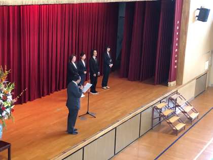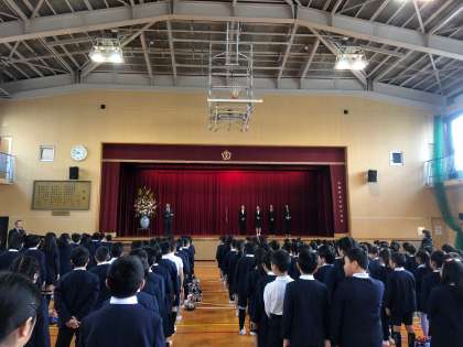 始業式の前に、4月に転任してきた5名の教職員の紹介がありました。