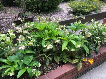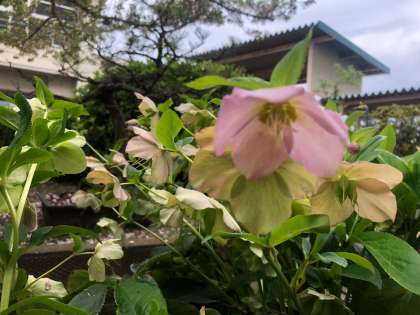 職員室前には“クリスマスローズ”がたくさん咲いています。