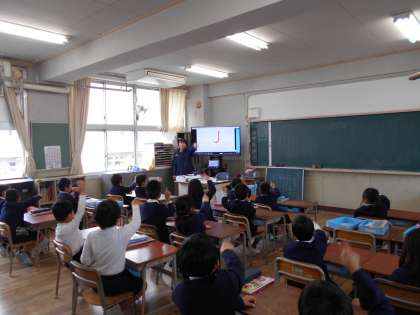 1年生も小学校で初めての英語モジュールを体験しました。