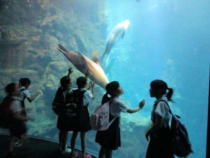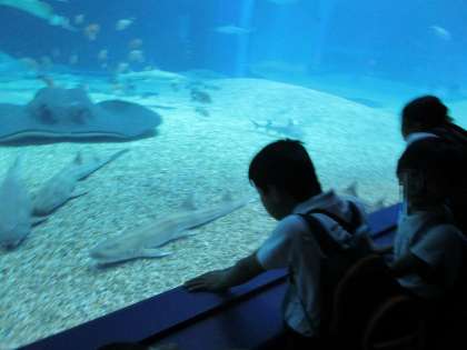 巨大水槽の中を泳ぎ回っているいろんな種類の魚をながめるだけでなく、魚たちとふれあうコーナーもあり、子どもたちは様々な体験をすることができた一日でした。