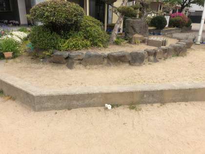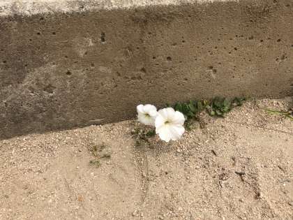 コンクリートと土のすき間に、かわいい花が咲いていました。(玄関近くの池の裏です)