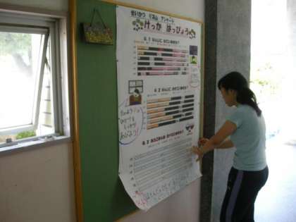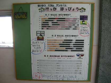 7月12日(金) 保健室前の掲示板は健康情報満載です。今回は生活リズムアンケートの集計結果を掲示しています。個人懇談会などで来校の際は、どうぞご覧ください。