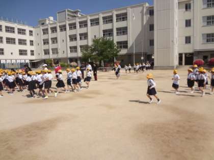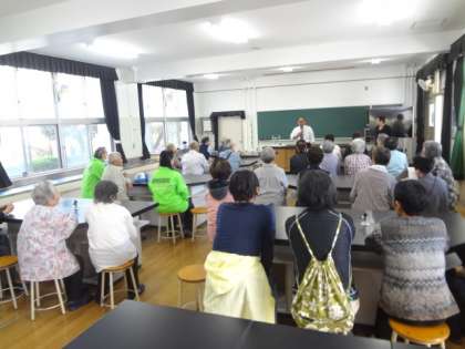 最初に、地震を想定した避難訓練を行いました。集合後、地域の方からもお話をいただきました。