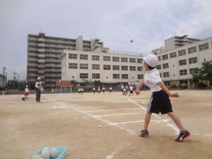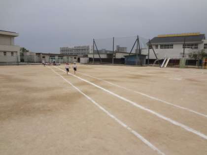 1年生にとっては初めての経験。50メートル走を走る歩幅も短く、とてもかわいかったです。