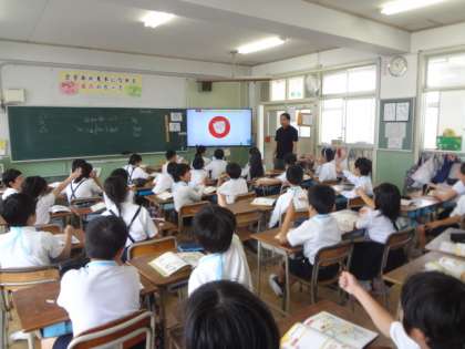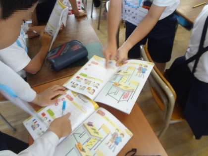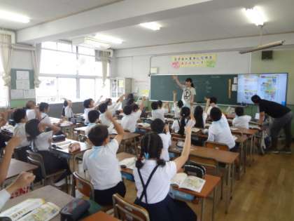 “ロック・シザーズ・ペーパー”と英語でじゃんけんをした後、パソコンでいろんな韓国・中国・フランスなど各国のことばを聞きながらじゃんけんをしました。