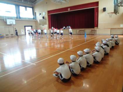 担任の先生もいっしょに走って子どもたちを励ましていました。