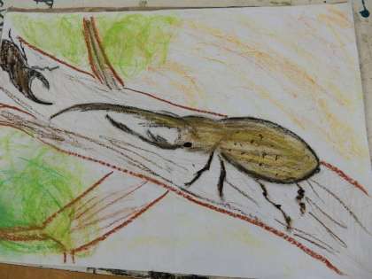 9月11日(木) 夏休みに子ども達が描いた作品が、明日、梱包されそれぞれの作品コンクールに送られていきます。その前に、印象深い作品3点を皆さんに紹介します。昆虫や植物、ふるさとの思い出などのテーマで描かれた作品です。
