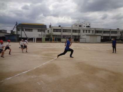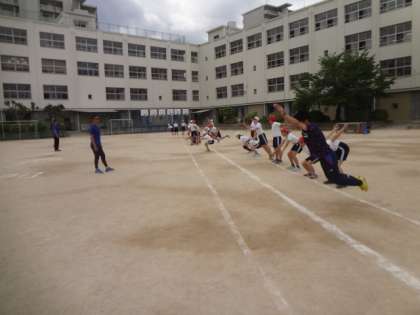 また、立ち幅跳び3メートルの記録を持つ荒川選手から立ち幅跳びのコツを教えてもらい、みんなで練習しました。