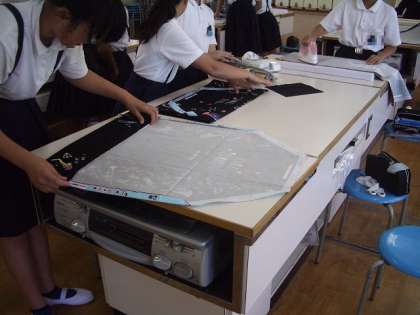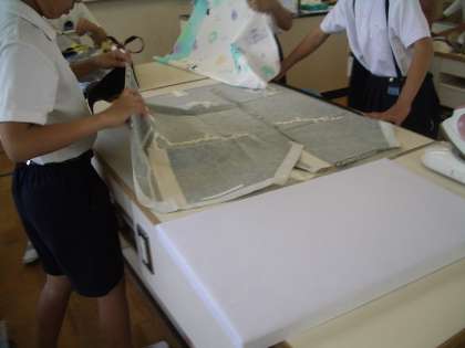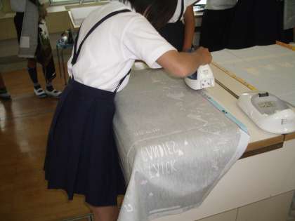 アイロンをていねいにあて、きれいに折り目をつけています。
