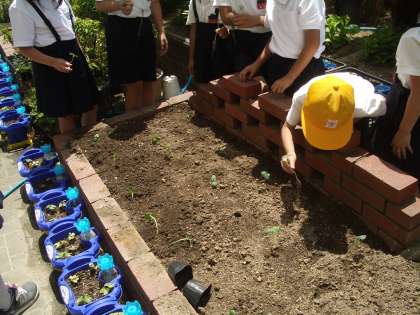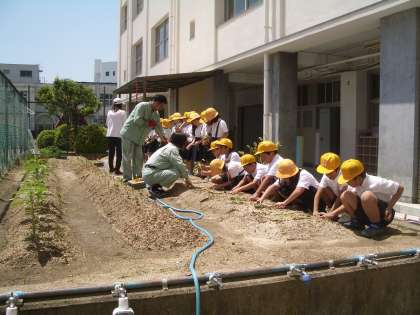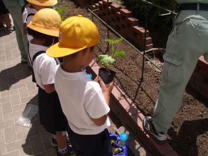 ナス・キュウリ・オクラのほか、学習園にはサツマイモを植えました。
