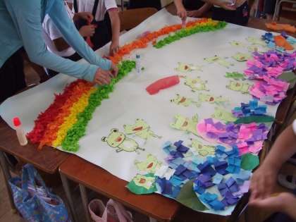 2年生が6月の玄関掲示を完成させました。