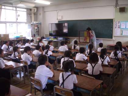 1年生は“百玉そろばん”を使っての学習をしていました。
