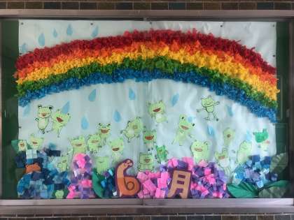 6月8日(水) 6月の玄関掲示は、2年生による“アサガオとカエルと虹”です。