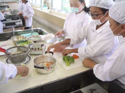 5年生の家庭科・調理実習は、ゆで野菜のサラダです。