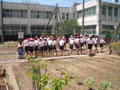 印のついた棒を見ながら、苗をていねいに植えていきました。