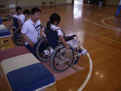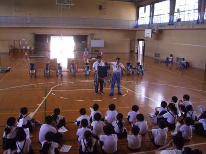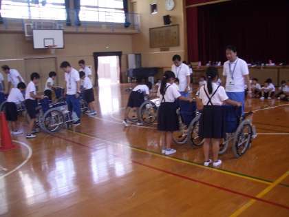 リハビリテーションセンターの方々がお越しくださり、子どもたちに“車いす体験”の指導をしてくださいました。