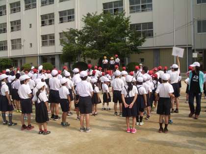 集会委員の言った果物の文字の数だけ集まってその場に座るゲームでした。