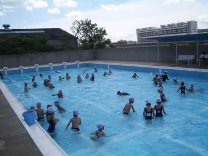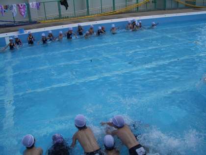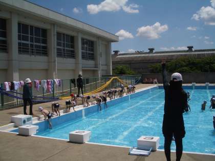 1年生は“ハンドサイン”にもしっかり反応してプールの中に入っています。