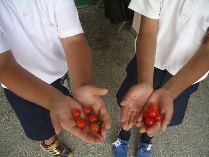 6月26日(水) プチトマトの収穫をしました。 たくさん採れて子どもたちは大喜びでした。